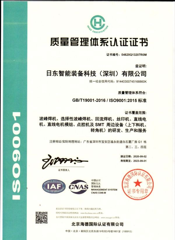 日東科技通過ISO9001:2015質量管理體系認證